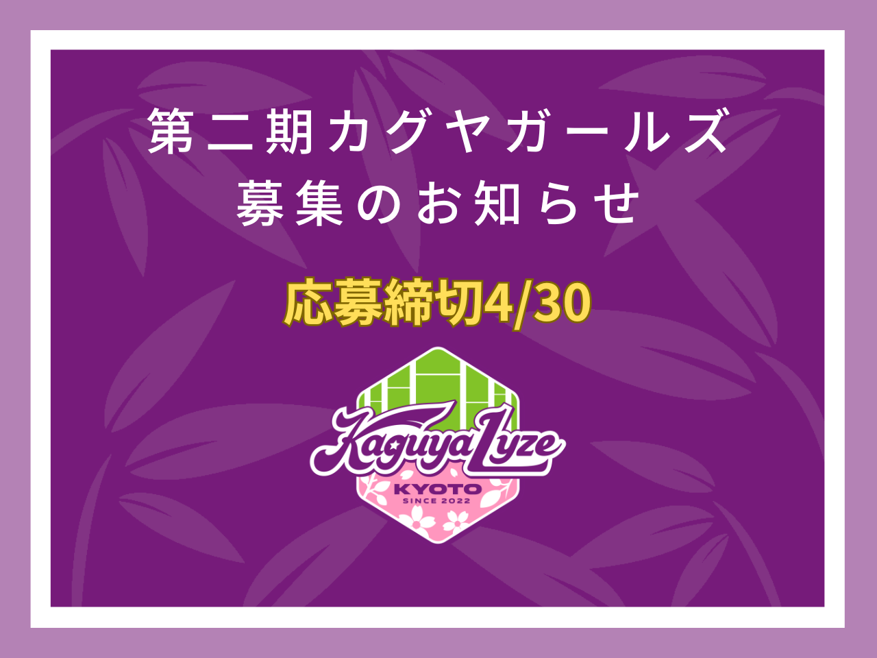 第二期カグヤガールズ募集のお知らせ<4/30応募締切>